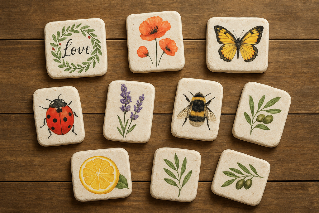 Özgün desenler ve tasarımlarla ürettiğimiz taş magnetler, hem dekoratif hem de hediyelik olarak tercih edilmektedir.